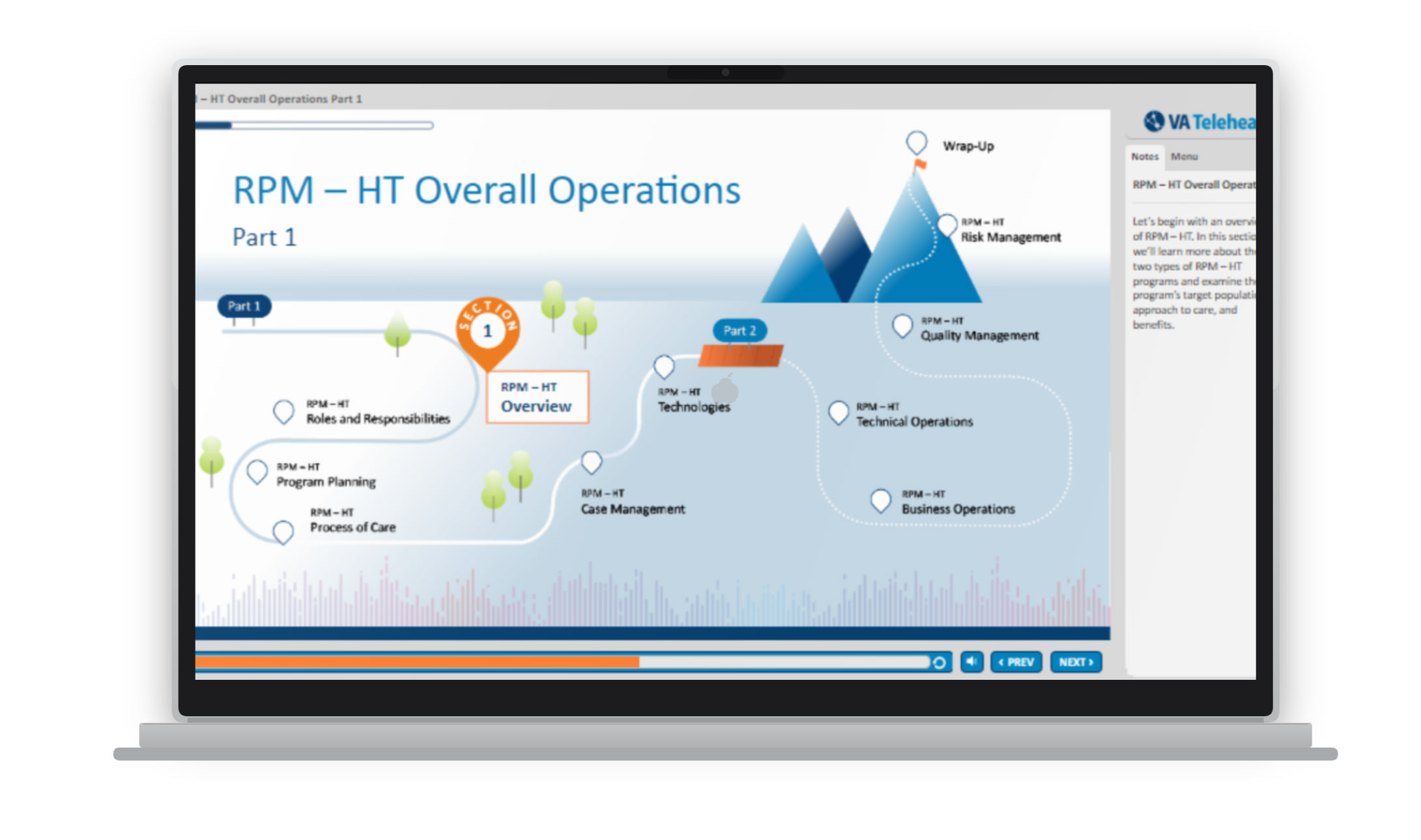 As an Instructional Designer, I was able to leverage my game-related knowledge to increase interactivity, engagement and knowledge retention in several online courses aimed at medical professionals within the Veterans Health Administration. This was done with the Articulate Storyline software which I learned to use and took advantage of its interactive capabilities. I also designed and developed from the ground up an internal training initiative concerning cybersecurity and proper equipment usage.